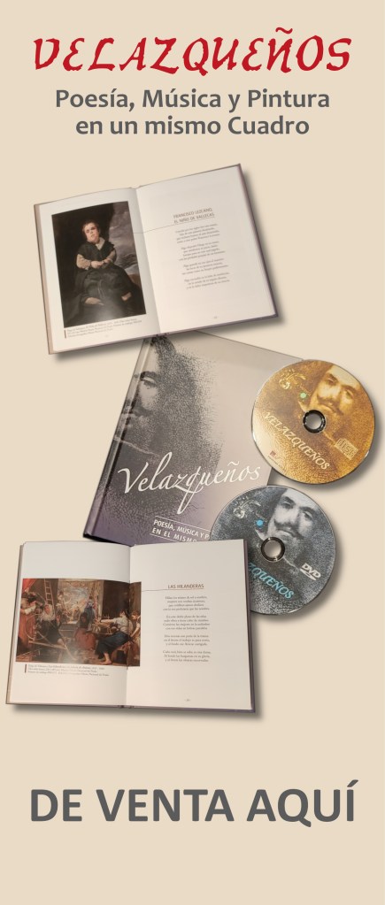 Acompañado por un CD y un DVD (o un USB) en el que están recogidos los vídeos creados a partir de las canciones compuestas a los sonetos del poeta uruguayo Mario Barité, la obra se completa con un libro de una edición de calidad, en tapa dura, que recoge en fotografía los 15 cuadros de Velázquez y los respectivos sonetos que componen la obra.